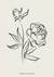 Et maleri af en rose, tegnet i sort på en beige baggrund.