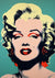 Dette maleri forestiller et levende pop art-portræt af Marilyn Monroe med hendes karakteristiske blonde hår, røde læber og skønhedsplet mod en blågrøn baggrund. Hendes iøjnefaldende makeup, inklusive lys rød læbestift og øjenskygge, skiller sig ud i dette stiliserede billede.