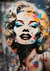 Dette maleri forestiller Marilyn Monroe med livlige farvestreger mod en tekstureret baggrund, der indfanger hendes ikoniske smil og glamourøse look.