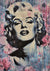 Dette maleri forestiller et stiliseret portræt af Marilyn Monroe med bølget blond hår og sort-hvide toner, oplyst med lyserøde detaljer. Baggrunden er dekoreret med lyserøde roser og dryp af hvid maling over en blå og lilla gradient.