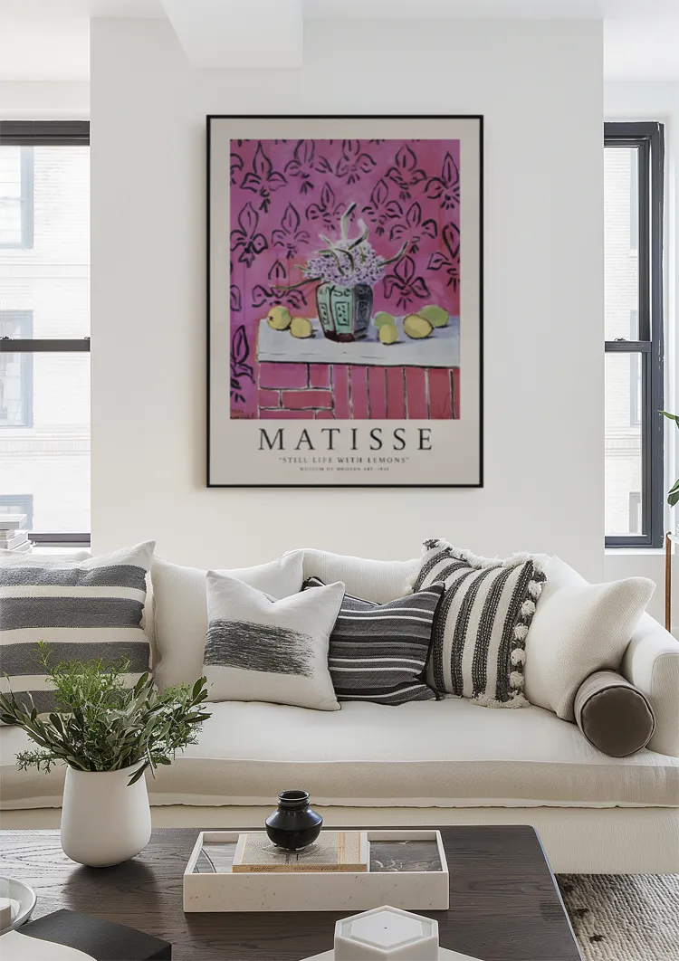 Dette fantastiske maleri, 'Still Life with Citrons' af Matisse på Museum of Modern Art (1943), sprudler af livlighed gennem udtryksfulde penselstrøg og mættede farver, hvilket skaber tidløs skønhed.