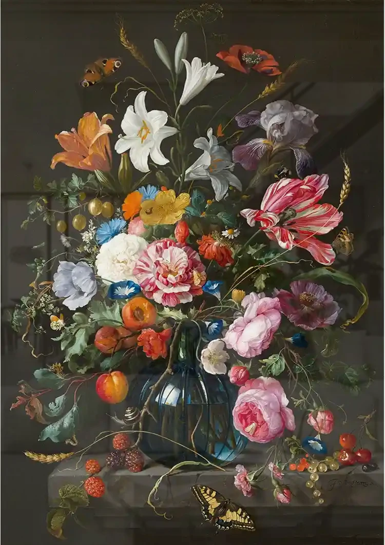 Stilleben med blomster i en glasvase Jan Davidsz de Heem 1684
