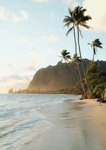 Strand ved solnedgangsmaleri
