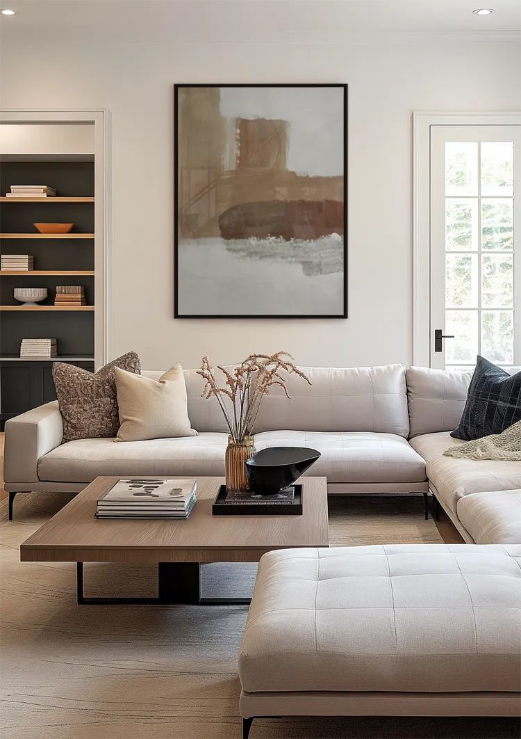 - Kunst over sofaen? Vælg en bredde på mindst 100 cm. Det kan være ét stort værk, eller et kombination af to eller tre mindre værker ved siden af hinanden.