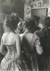 Et sort-hvidt maleri fra fortiden med masser af damer på række.