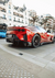 Dit schilderij toont een Ferrari  812 Competizione geparkeerd in een stadsstraat en toont het strakke ontwerp en de dubbele uitlaten, met elegante architectuur.