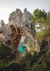 Een schilderij van een rots gevormd in een boog, met daartussen uitzicht op de zee.