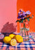 Een zomers stilleven vol zon en kleur, waar citroenen en paarse bloemen elkaar speels aanvullen.