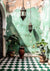 Een verweerd hoekje met groene muur, planten en oosterse lampen straalt rust en nostalgie uit.