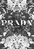 Bloemen op het schilderij in de kleuren zwart en wit. Waarbij het PRADA logo duidelijk is te zien.