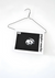 Zwart-wit schilderij met een zwarte kledinghanger waaraan een tijdschrift hangt met de tekst "paper mache".