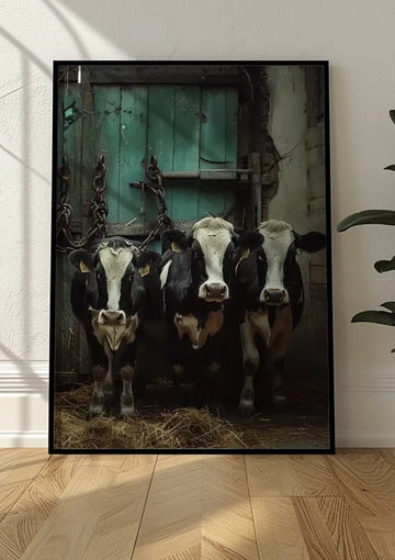 Three Cows In A Barn Schilderij