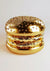 Dit schilderij toont een digitaal weergegeven gouden burger met broodje, pasteitje en ingrediënten allemaal afgebeeld in een glanzende gouden textuur.