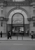 Een zwart-wit schilderij van voetgangers die langs de elegante ingang van de Cartier winkel lopen.