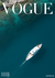 Schilderij met een cover van het tijdschrift Vogue een bovenaanzicht van een witte boot.