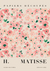 Een  in vintage-stijl schilderij met de titel "Papiers Découpés" van H. Matiss, met een bloemmotief van roze en groen op een gebroken witte achtergrond.