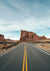 Dit schilderij toont een tweebaansweg met dubbele gele lijnen die onder.