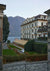 Dit schilderij toont een elegant gebouw met meerdere verdiepingen en balkons, gelegen in een verzorgde tuin met gesnoeide heggen.
