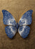 Een delicate vlinder met vleugels als Delfts blauw porselein tegen een gouden achtergrond.