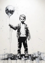 Jongen Zwart Wit Met Ballon Schilderij