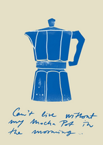 Dit schilderij vangt een grafische illustratie van een blauwe Moka Pot tegen een lichtbruine achtergrond. Een stijlvolle toevoeging voor liefhebbers van koffie.