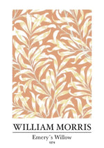 Dit schilderij, genaamd 'Emery's Willow' van William Morris uit 1876, toont een lichtgekleurd wit-geel motief op een achtergrond van bruine tinten, een verfijnd en tijdloos ontwerp.
