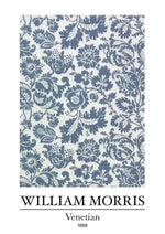 Dit schilderij, genaamd 'Venetian' door W. Morris, laat een levendig blauw en wit ontwerp zien met elegante Venetiaanse bloemenpatronen uit 1868.