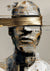 Een abstract portret waarin een gouden band de ogen bedekt, symbool voor zelfgekozen blindheid en innerlijke reflectie.