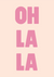 Dit speelse schilderij met de uitroep "OH LA LA" in grote, opvallende, roze letters op een zachtbeige achtergrond voegt een vleugje ondeugendheid en stijl toe aan elke ruimte. Een charmante blikvanger!