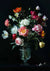 Dit schilderij toont een kleurrijk boeket van witte, roze, rode en gele bloemen tegen een donkere achtergrond. Met enkele kleinere bloemen en groen diepte toevoegen aan het arrangement.