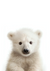 Dieses Gemälde zeigt eine intime Nahaufnahme eines niedlichen Eisbärenjungen mit weißem, flauschigem Fell, der direkt in die Kamera blickt. Der schlichte weiße Hintergrund lenkt den Fokus auf das Jungtier.