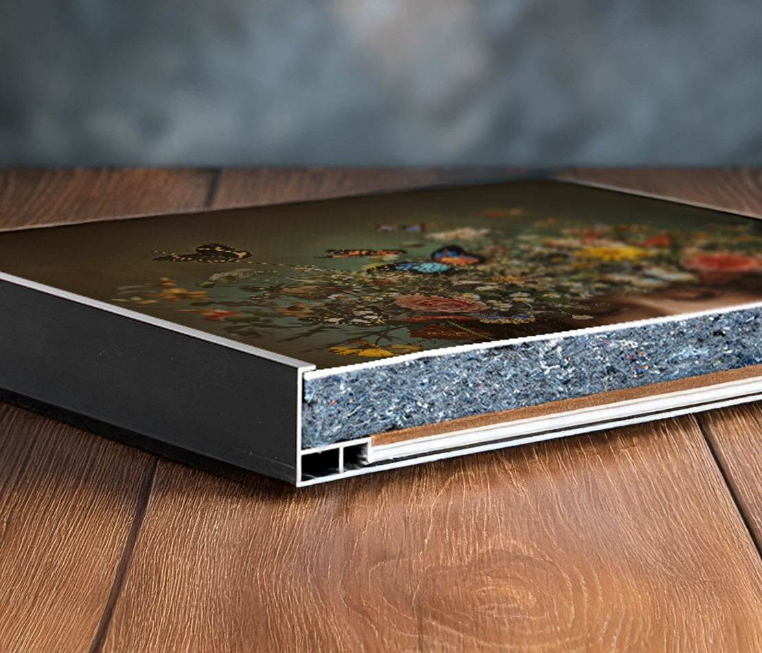 Die Wahl des richtigen Materials hängt ganz von Ihrem gewünschten Look ab. Wünschen Sie sich einen warmen, klassischen Look? Dann ist Leinwand perfekt: Die matte, textilähnliche Oberfläche vermittelt ein zeitloses Gefühl. Für ein modernes und luxuriöses Finish wählen Sie Acrylglas , wo die Farben dank der glänzenden Schicht strahlen und Details zum Leben erweckt werden. Dibond hingegen ist die beste Wahl, wenn Sie einen schlichten, minimalistischen Stil bevorzugen: Es ist robust, dezent und hat eine matte Oberfläche. Wünschen Sie sich ein elegantes, klassisches Kunstwerk? Unsere gerahmten Optionen bieten ein stilvolles Finish, das perfekt in jedes Interieur passt.
