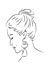 Ein schwarz-weißes Gemälde mit dem Gesicht einer Frau, deren Haare zu einem Pferdeschwanz gebunden sind und die Ohrringe trägt.