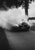 Dieses Gemälde zeigt ein Schwarzweißfoto eines Mercedes AMG, der einen großen Burnout macht, wodurch das Fahrzeug teilweise aus dem Blickfeld verschwindet.