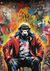 Dieses Gemälde zeigt ein lebendiges Graffiti-Kunstwerk mit einem Schimpansen im Anzug, und der Hintergrund ist farbenfroh.