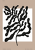 Ein Gemälde mit einem vergrößerten schwarzen Blatt vor einem weißen Hintergrund.