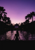 Ein Gemälde des Silhouetts einer Dame am Pool vor einem violettfarbenen Himmel.