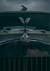 Dieses Gemälde zeigt eine Nahaufnahme des ikonischen Emblems The Spirit of Ecstasy auf dem Kühlergrill eines Rolls Royce unter einem bewölkten Himmel.
