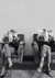 Ein schwarz-weißes Gemälde von zwei Frauen auf einem Sessel, jede mit einer Zeitschrift vor ihrem Gesicht. Auf den Zeitschriften sind deutlich die Marken Dior und Officiel zu sehen.