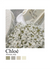 Ein Gemälde zarter weißer Blumen in einem gewebten Korb mit dem darunter stehenden Text Cloé, Florenz, Italien.